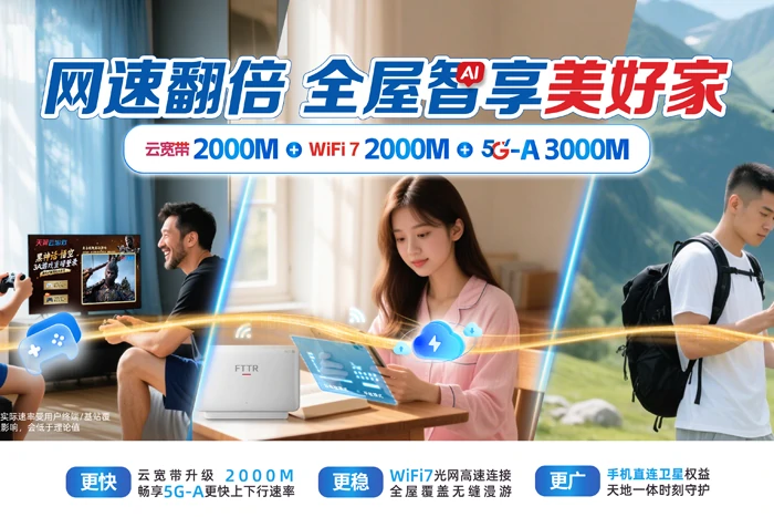 作为固阳县家庭宽带的首选品牌,中国电信在固阳县提供真光纤入户(FTTH)服务,带宽真实、速率稳定,是远程办公、在线网课、4K/8K视频、云游戏等高需求场景的理想选择。
